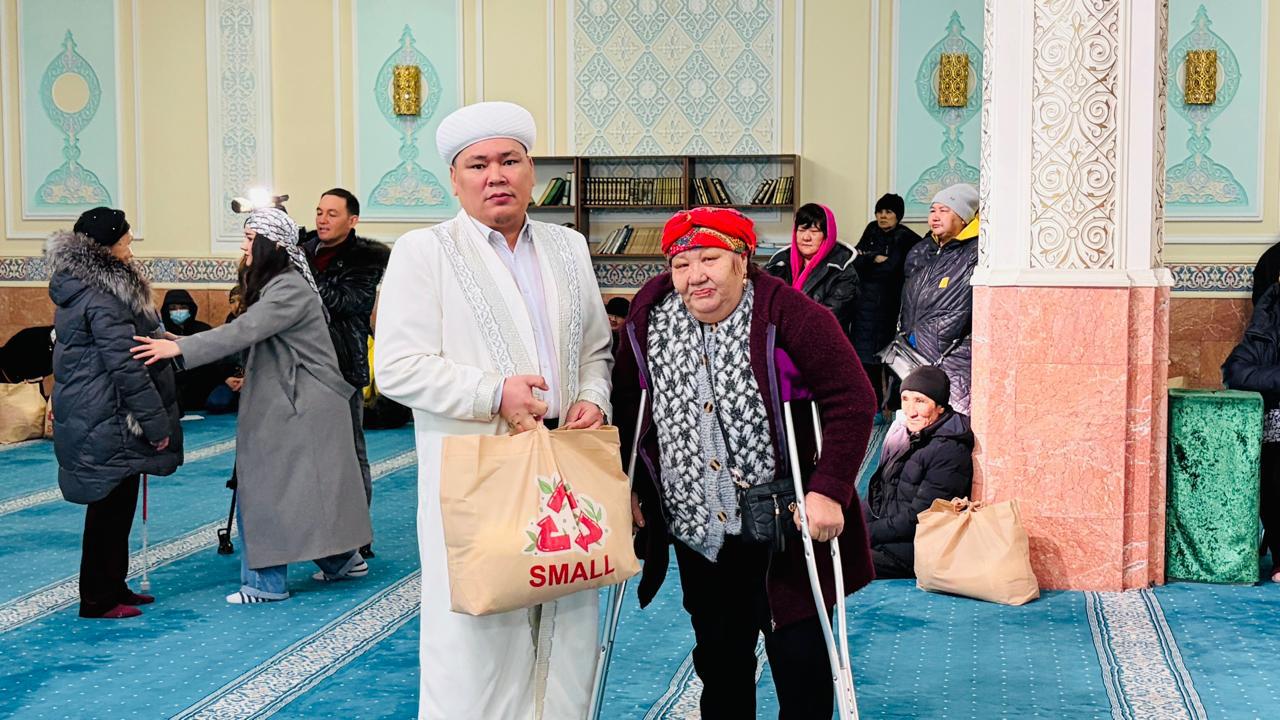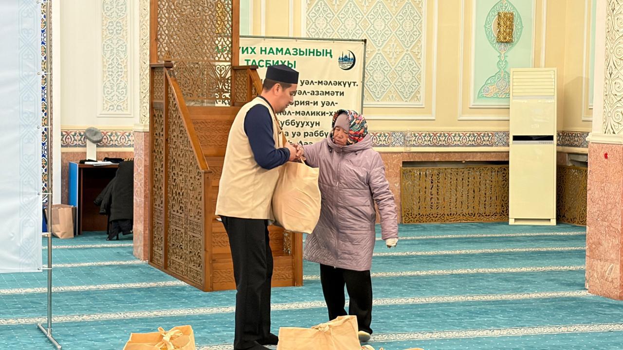Қайырымдылық акциясына облыстардың бас имамдары мен зекет өкілдері, имамдар және көмек алуға өтініш білдірген жандар қатысты. Шара барысында көпбалалы отбасылар мен мұқтаж азаматтарға азық-түлік себеттері табысталды.