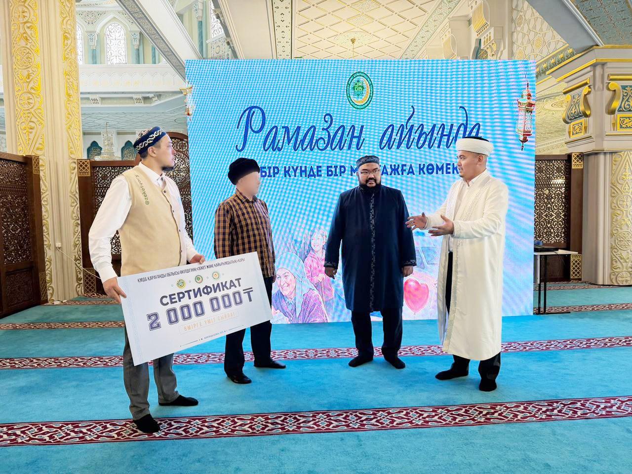 ҚМДБ Төрағасы, Бас мүфти Наурызбай қажы Тағанұлы хазіреттің тапсырмасымен «Зекет және қайырымдылық» қорының директоры Мақсатбек Қайырғалиев Қарағанды облысына жасаған іссапары аясында облыстық «Әнет баба» мешітінде өткен «Өмірге үміт сыйла» қайырымдылық акциясына қатысты.